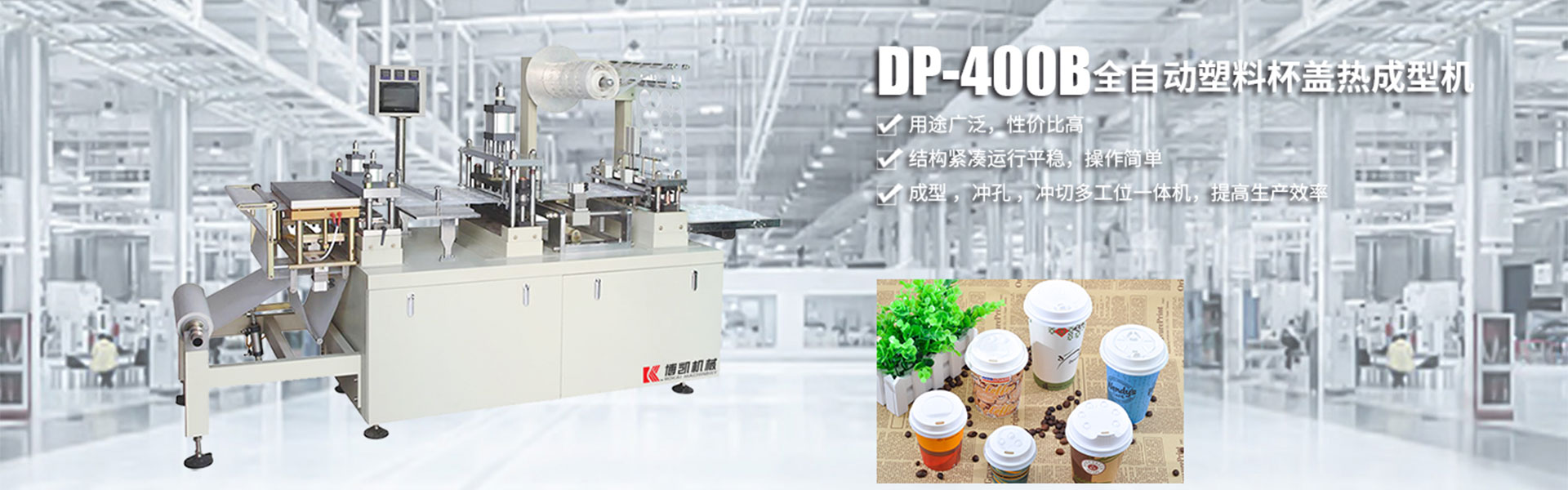 瑞安市博凱機(jī)械有限公司位于祖國的東海之濱,享有中國包裝機(jī)械城之譽(yù)的美麗海濱城市------瑞安。瑞安是中國著名的包裝機(jī)械、制藥機(jī)械生產(chǎn)基地。瑞安市博凱機(jī)械有限公司主營:一次性杯蓋機(jī),杯蓋成型機(jī),塑料杯蓋成型機(jī),全自動(dòng)塑料成型機(jī);借助于其得天獨(dú)厚的資源優(yōu)勢(shì),結(jié)合市場(chǎng)需求以及多年生產(chǎn)鋁塑包裝機(jī)技術(shù),吸取吸塑機(jī)的優(yōu)點(diǎn)創(chuàng)新研發(fā)的新型產(chǎn)品Dpp400F吹塑成型機(jī)!該機(jī)實(shí)現(xiàn)了放卷,成型,沖孔,沖裁,出料,收卷···